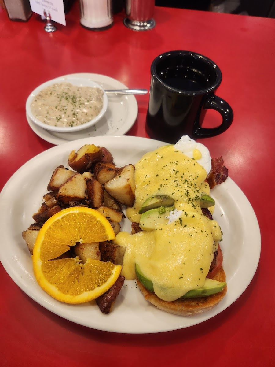 Sammy J's is a great, classic American diner. A mom and pop kind of place. Several variations on the Eggs Benedict, including the Irish with corned beef hash, and Greek with feta cheese. Cool retro look, service was fast and friendly. Definitely check out the specials before you decide on your order!